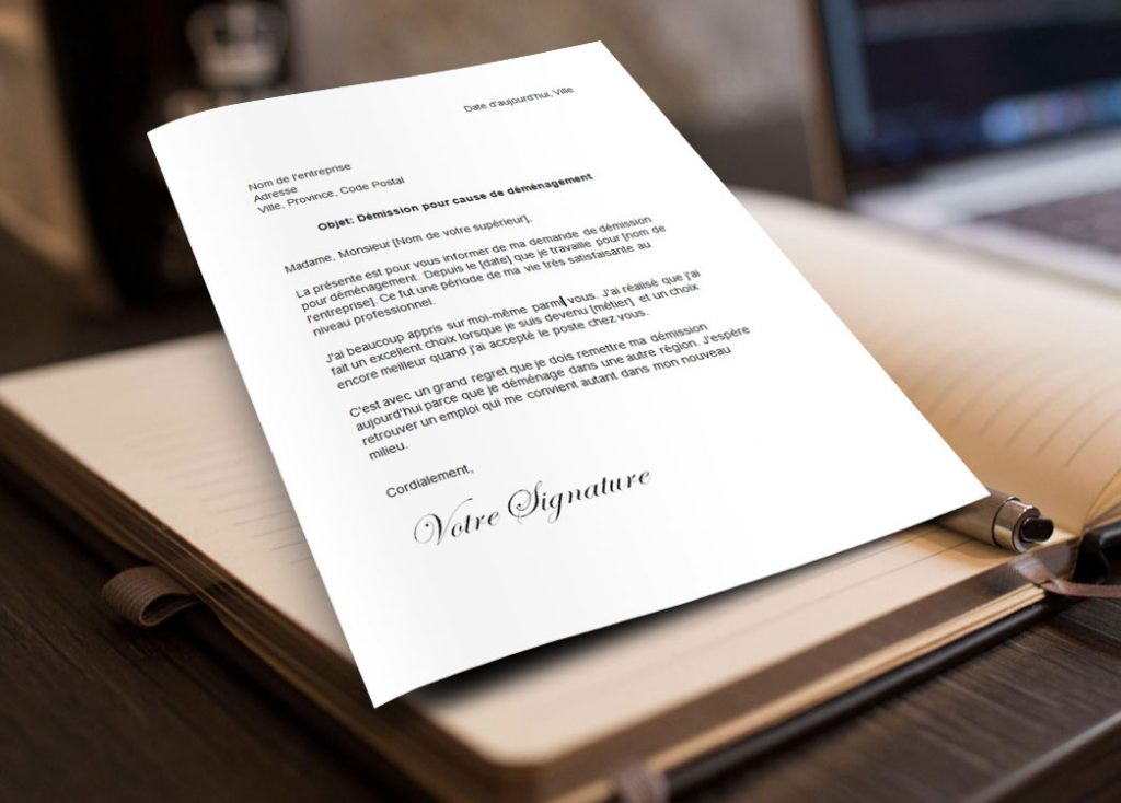 Lettre de démission pour déménagement