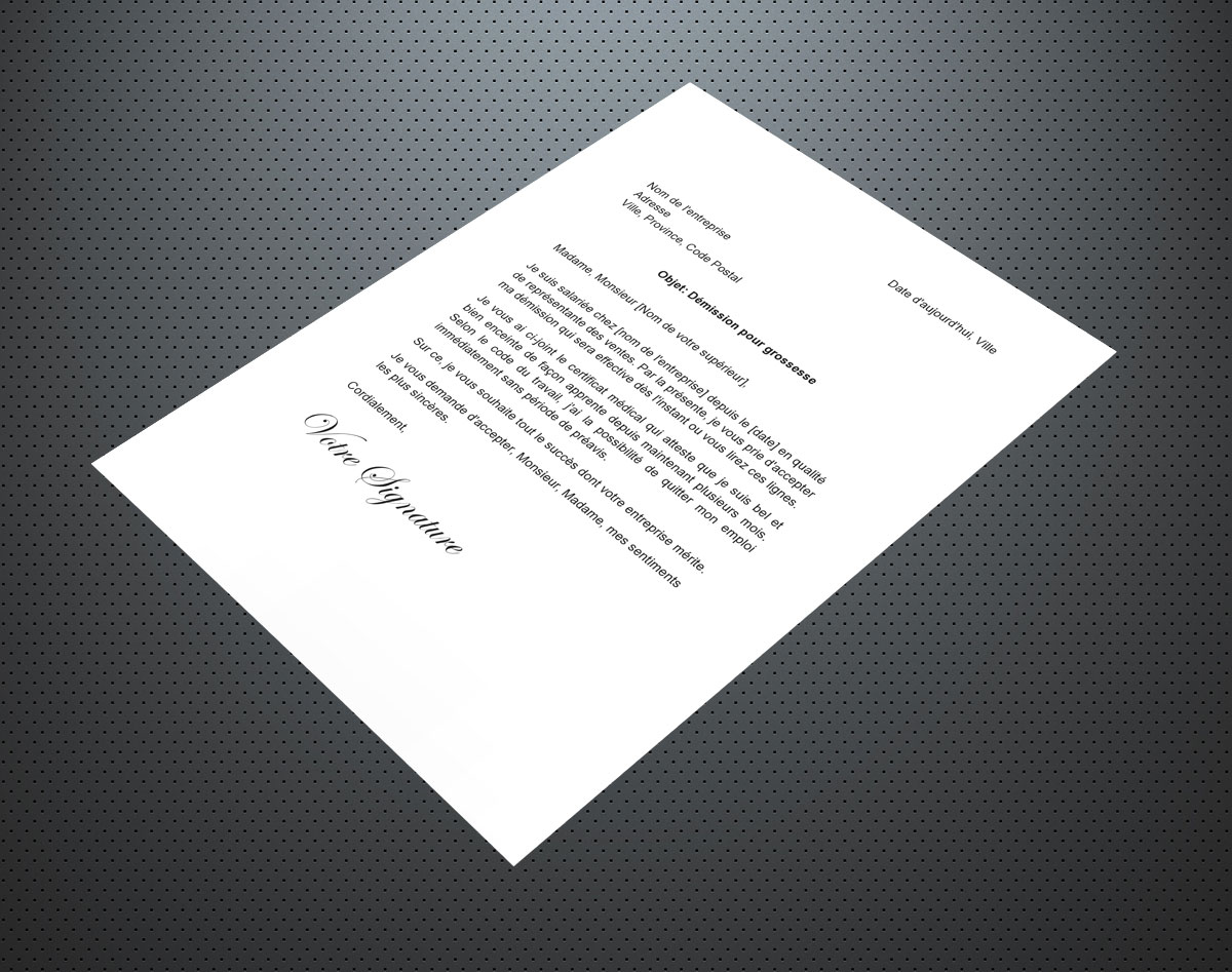 Lettre de démission pour grossesse