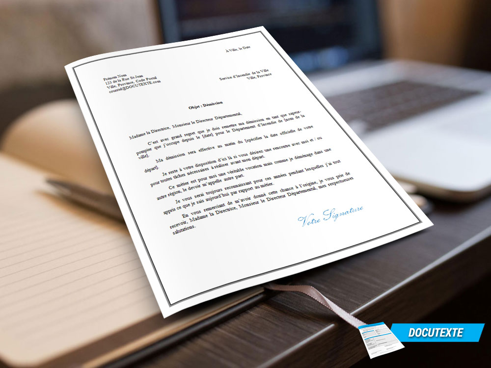 Modèle et exemple de lettre de démission pour pompière ou pompier.