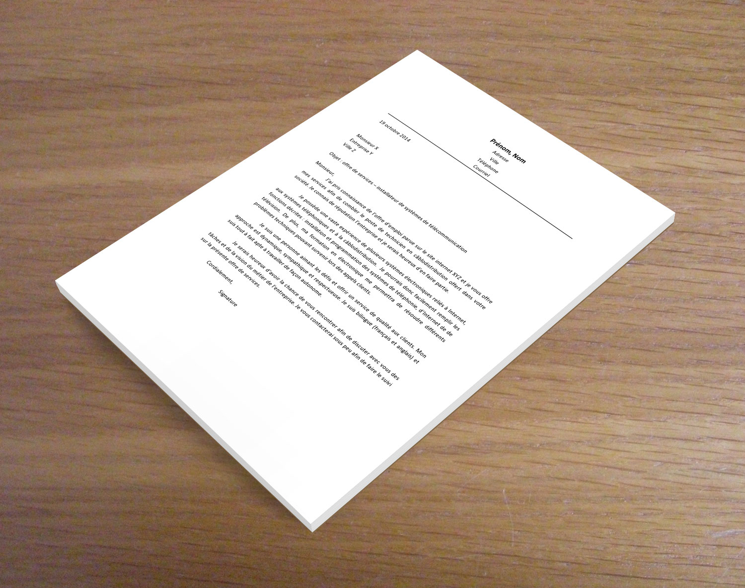 Simplement cliquer sur les liens prévus à cet effet, ouvrir le fichier dans votre traitement de texte favori et le modifier pour le personnaliser.