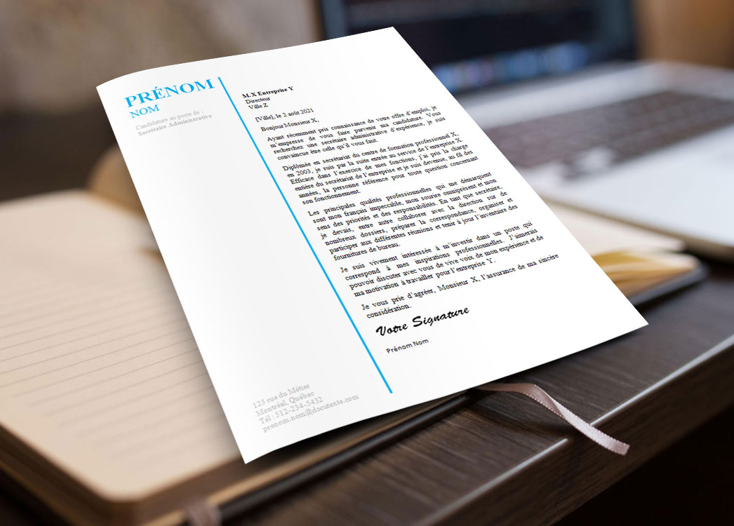 Modèle de Lettre de motivation au Design Professionnel | secrétaire administrative